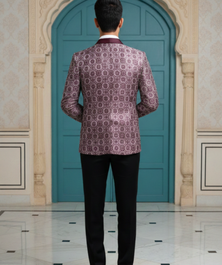 Men’s Premium Wine Geometric Jacquard Tuxedo Blazer with Satin Peak Lapels