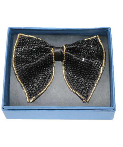 Men’s Black Hand-Embroidered Metallic Beaded Bow Tie