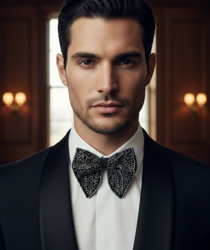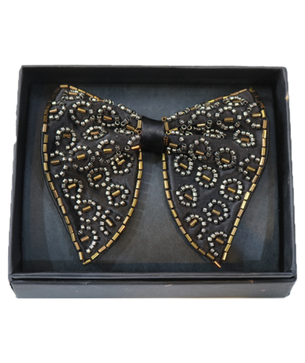 Men’s Black Hand-Embroidered Metallic Beaded Bow Tie
