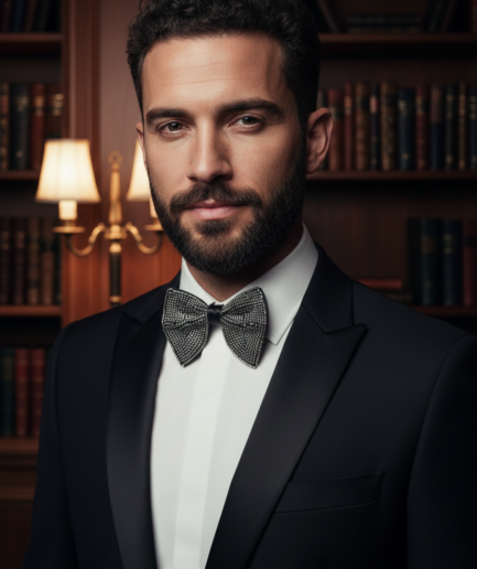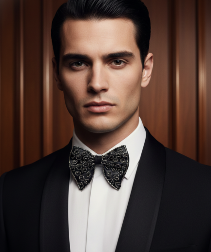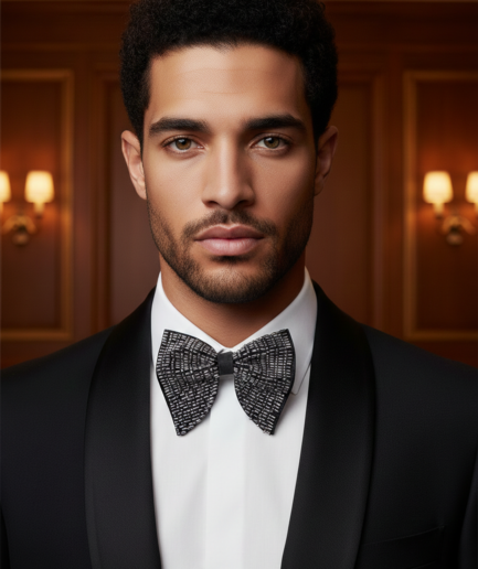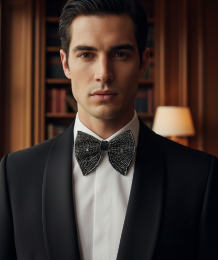 Men’s Black & Silver Beaded Embroidered Bow Tie