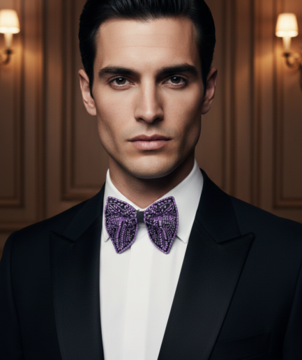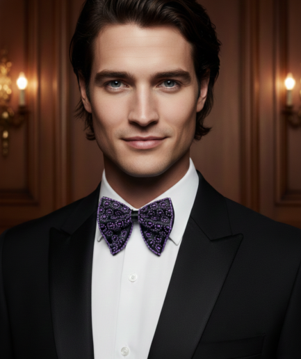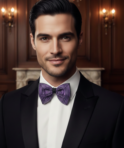 Hand-Beaded Purple Crystal Men’s Designer Bow Tie