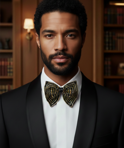 Men’s Black & Gold Beaded Embroidered Bow Tie