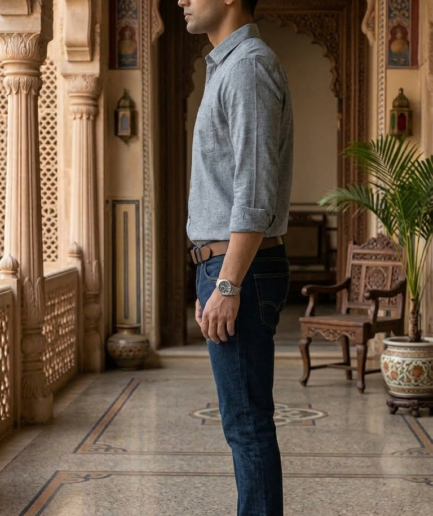 Men’s Grey Casual Shirt – Premium Cotton Regular Fit Stylish Everyday Shirt | Smart Casual Button-Down for Men