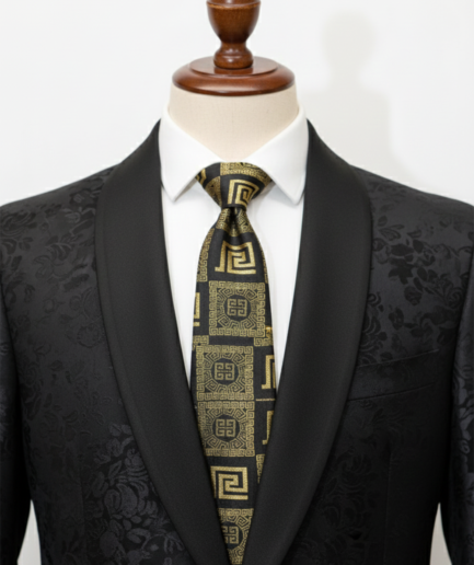 • Black Tie with Golden Work – Premium Formal Necktie80%
