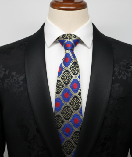Blue Tie with Red Dots & Black Work – Stylish Designer Necktie