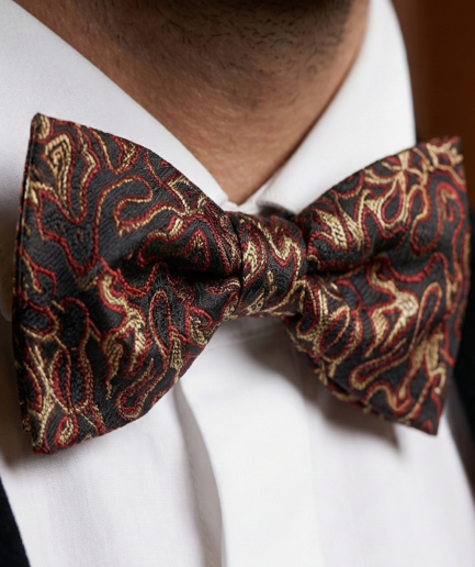 Black & Red Paisley Jacquard Bow Tie – Sophisticated Formal Accessory