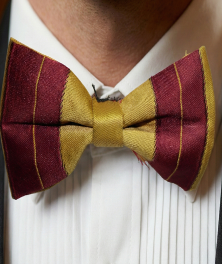 Classic Burgundy & Gold Striped Bow Tie – Elegant Formal Accessory