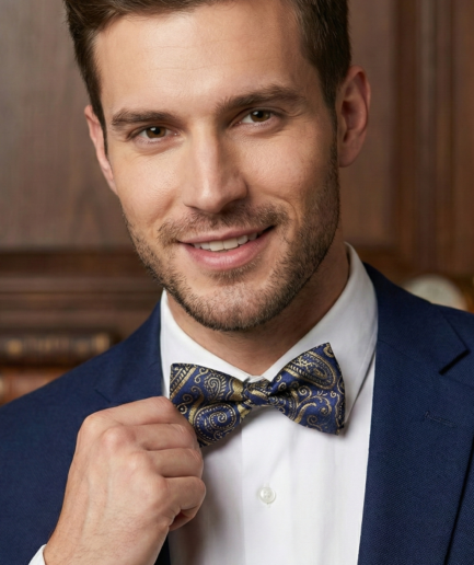 Classic Navy & Gold Paisley Bow Tie – Elegant Formal Accessory