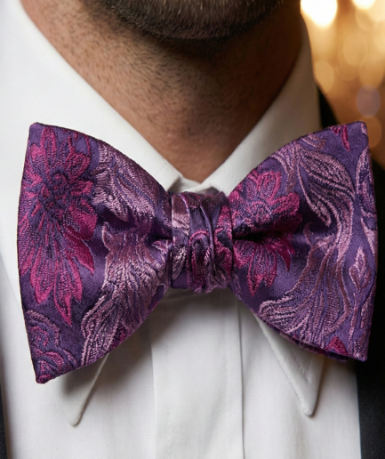 Elegant Purple Jacquard Floral Bow Tie – Refined Formal Accessory