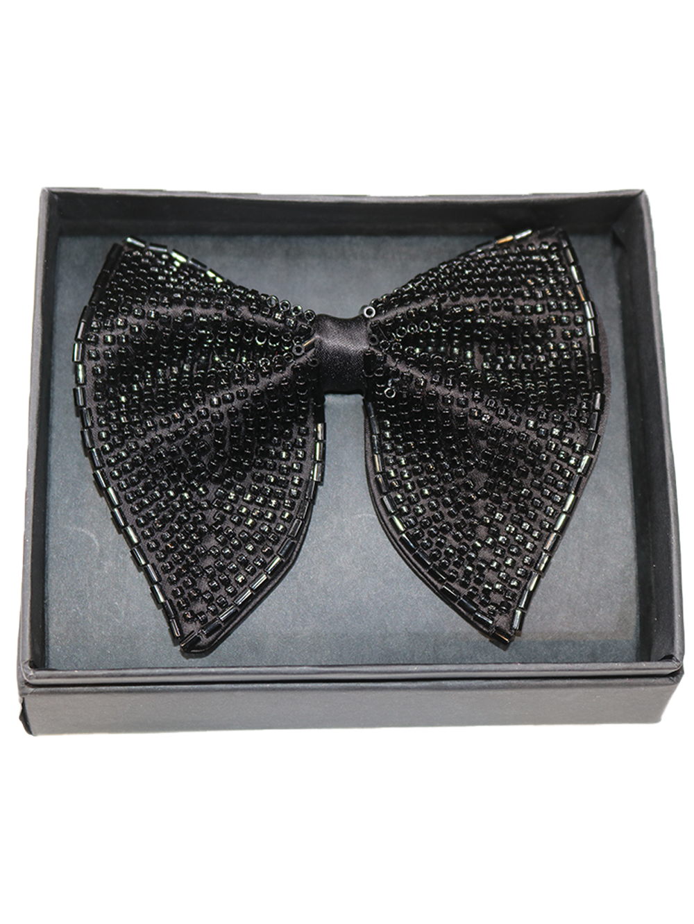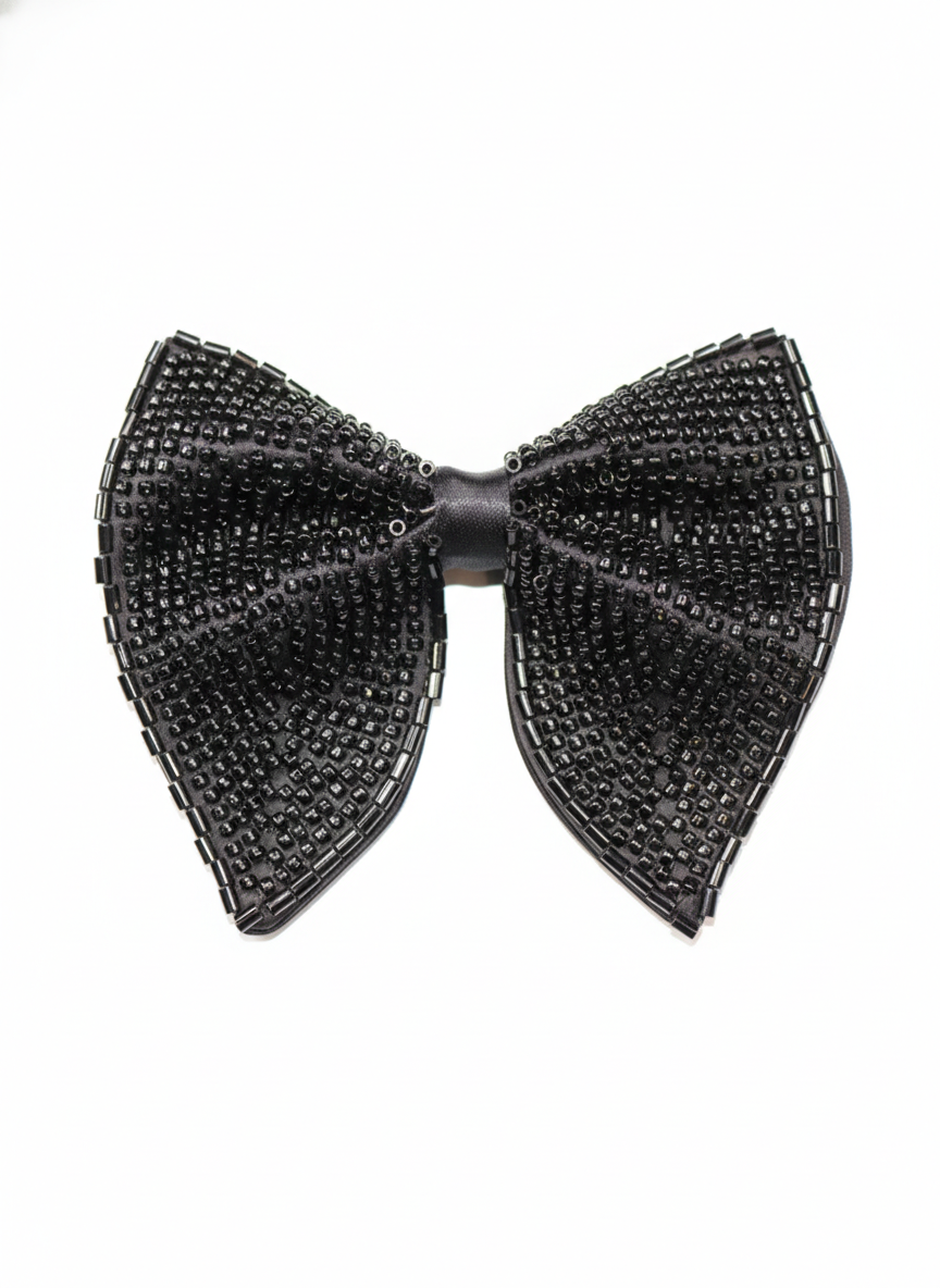 Add bold elegance to your formal wardrobe with this Black Embroidered Beaded Statement Bow