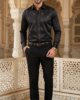 Designer Men’s Charcoal Black Embroidered Dress Shirt – Gold Filigree & Geometric Motif
