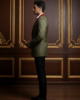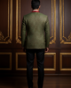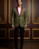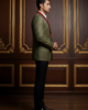 Elevate your formal wardrobe with this impeccably tailored evening blazer, designed for the man who isn’t afraid to command a room. Crafted from a rich emerald green brocade, the fabric features an intricate, multidimensional geometric pattern accented with hints of gold and red.