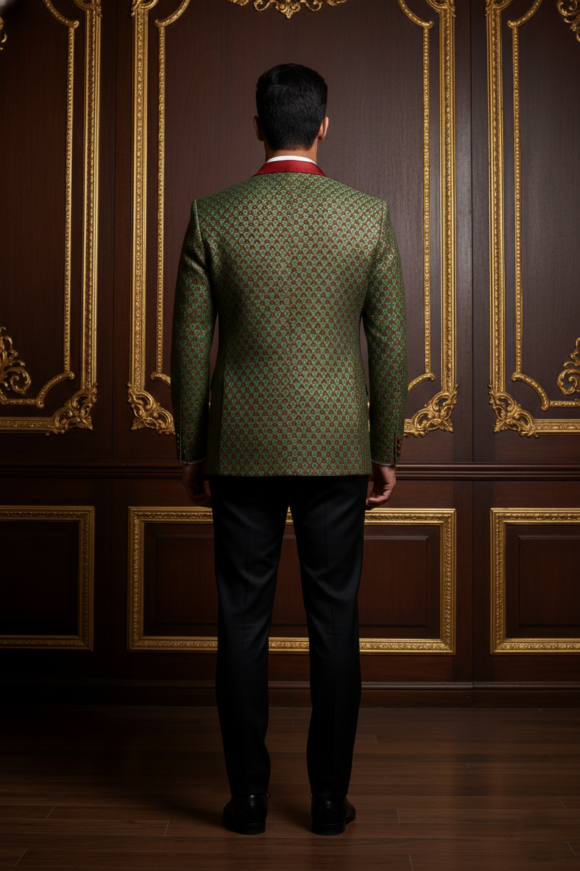 Emerald & Crimson Brocade Heritage Tuxedo Blazer