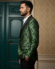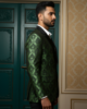 Emerald Sovereign Green Jacquard Blazer – Slim Fit Designer Tuxedo with Satin Peak Lapels