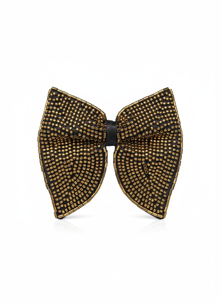 Gold Beaded Butterfly Statement Bow Tie