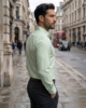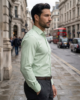 The subtle light green shade adds a fresh and elegant touch, making it suitable for office meetings, business events, corporate environments, and formal occasions. Featuring a crisp collar, fine stitching, and a structured regular fit, this shirt ensures a polished and confident appearance.