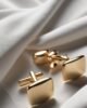• Expert Composition: A shallow depth of field keeps the focus sharply on the foreground cufflink, while the draped leather in the background adds a sense of movement and luxury.