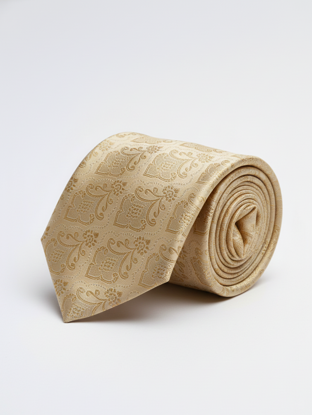 Enhance your formal style with this luxury silk tie, crafted for men who prefer understated elegance. Made from premium-quality silk, this beige tie features a subtle textured pattern and a soft sheen that complements both dark and light suits. Ideal for business meetings, formal events, weddings, and corporate wear, it adds a refined and confident touch to your overall look. A versatile accessory that blends sophistication with comfort.