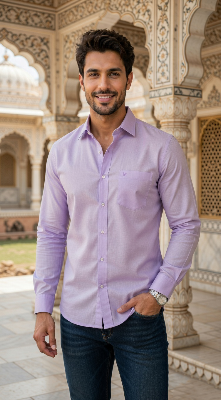 Infuse some personality into your weekend attire with this casual lavender button-down. Featuring a unique heathered texture, this shirt is crafted from a breathable blend that keeps you cool while looking sharp. The inclusion of a classic chest pocket and contrast white buttons enhances its casual appeal, making it an easy partner for dark-wash jeans or neutral chinos. It’s a fresh, modern take on a staple silhouette, perfect for those who want to add a touch of color to their casual rotation.