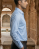 Men’s Designer Slim-Fit Sky Blue Micro-Jacquard Dress Shirt