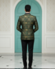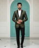 Men’s Emerald Green & Gold Floral Jacquard Tuxedo Blazer – Premium Slim Fit Party Wear Dinner Jacket