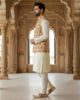 jacket paired with a classic ivory kurta pajama. Designed
