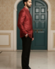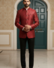 Men’s Luxury Maroon Bandhgala Jodhpur Jacket – Silk-Blend Textured Ethnic Blazer with Mandarin Collar