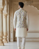 Men’s Pastel Floral Nehru Jacket with Ivory Kurta Pajama – Elegant Festive Wear Set