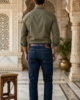 Men’s Premium Linen-Blend Button-Down Shirt in Olive Drab