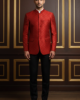 Men’s Premium Red Jacquard Silk Bandhgala Blazer – Ethnic Jodhpuri Suit Jacket for Weddings & Formal Occasions