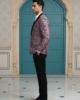Men’s Premium Wine Geometric Jacquard Tuxedo Blazer with Satin Peak Lapels