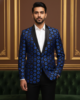 Men’s Royal Blue Geometric Circle Print Party Wear Blazer with Satin Shawl Lapel