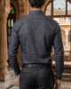 Men’s Slim-Fit Midnight Navy Geo-Print Dress Shirt with Contrast Topstitching