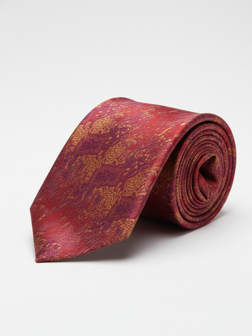 Make a bold yet refined statement with this red art silk tie adorned with intricate blue and golden patch work. Crafted from premium art silk, it offers a smooth, silk-like finish that is both durable and easy to maintain.
