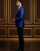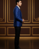 Elevate your formal wardrobe with this impeccably tailored royal blue blazer. Defined by its intricate geometric jacquard weave, the jacket features a subtle metallic sheen that catches the light, making it perfect for high-profile galas, weddings, or red-carpet events. The vibrant blue hue is grounded by sophisticated navy satin notch lapels, creating a refined contrast. Its slim-fit silhouette provides a sharp, modern structure that pairs effortlessly with black formal trousers for a classic “black-tie with a twist” look.