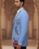 Sky Blue Artisan Blazer with Swan & Butterfly Hand-Embroidery – Designer Indo-Western Tuxedo
