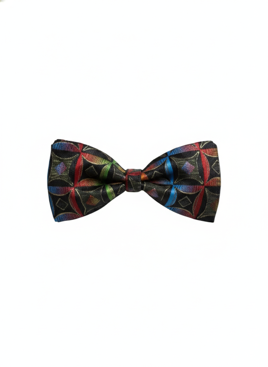 This bow tie is a masterclass in blending traditional formalwear with avant-garde artistry. Featuring a complex geometric pattern.