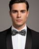 The design features a seamless interplay of deep midnight black and cool charcoal gray, often rendered in a subtle texture—like a herringbone or jacquard weave—that catches the light just enough to add dimension. It’s a versatile powerhouse; it pairs effortlessly with a crisp white shirt for a high-contrast pop or a light gray shirt for a sleek, monochromatic vibe. Crafted from premium materials that hold their shape from the first toast to the last dance, this bow tie ensures you look sharp, structured, and undeniably refined.
