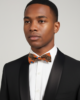 The design utilizes black as a structural element—often in the form of thin geometric linework or a subtle floral damask—to keep the brighter colors from feeling overwhelming. This black “work” provides the necessary definition that allows the orange and sky blue to pop with clarity. Ideally suited for a creative professional or a bold wedding guest, this bow tie breaks the monotony of traditional dress codes. It pairs beautifully with a navy suit to pull out the blue highlights or a black tuxedo for a truly high-fashion, avant-garde look.